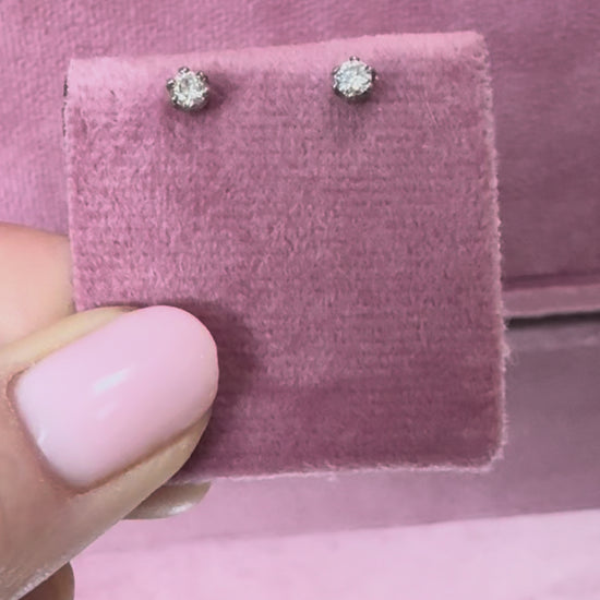 Classic Modern 18ct White Gold Six-Pronged Solitaire Diamond Earrings