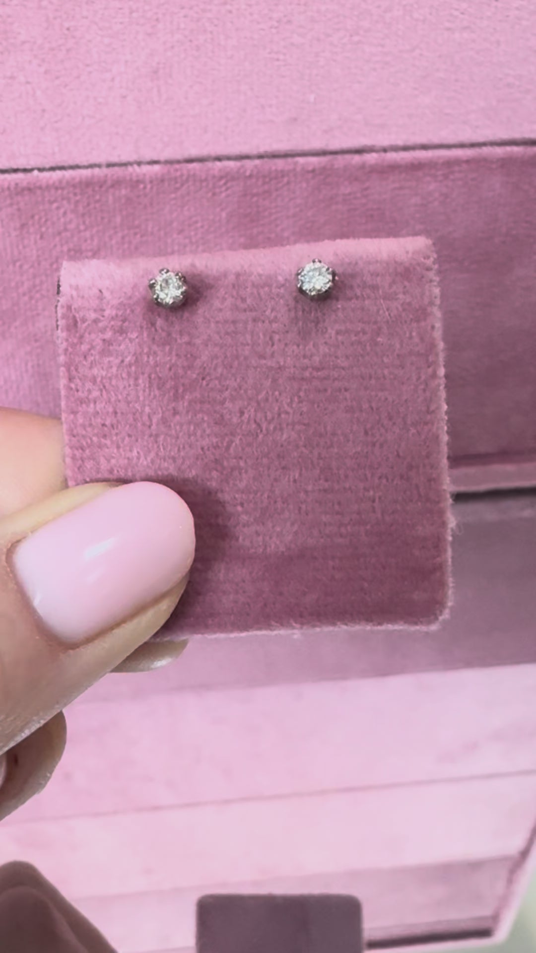 A beautiful pair of classic modern 18ct white gold six-pronged solitaire natural mined brilliant-cu diamond earrings. Total diamond weight 0.25ct. Beautiful white sparkling diamonds.