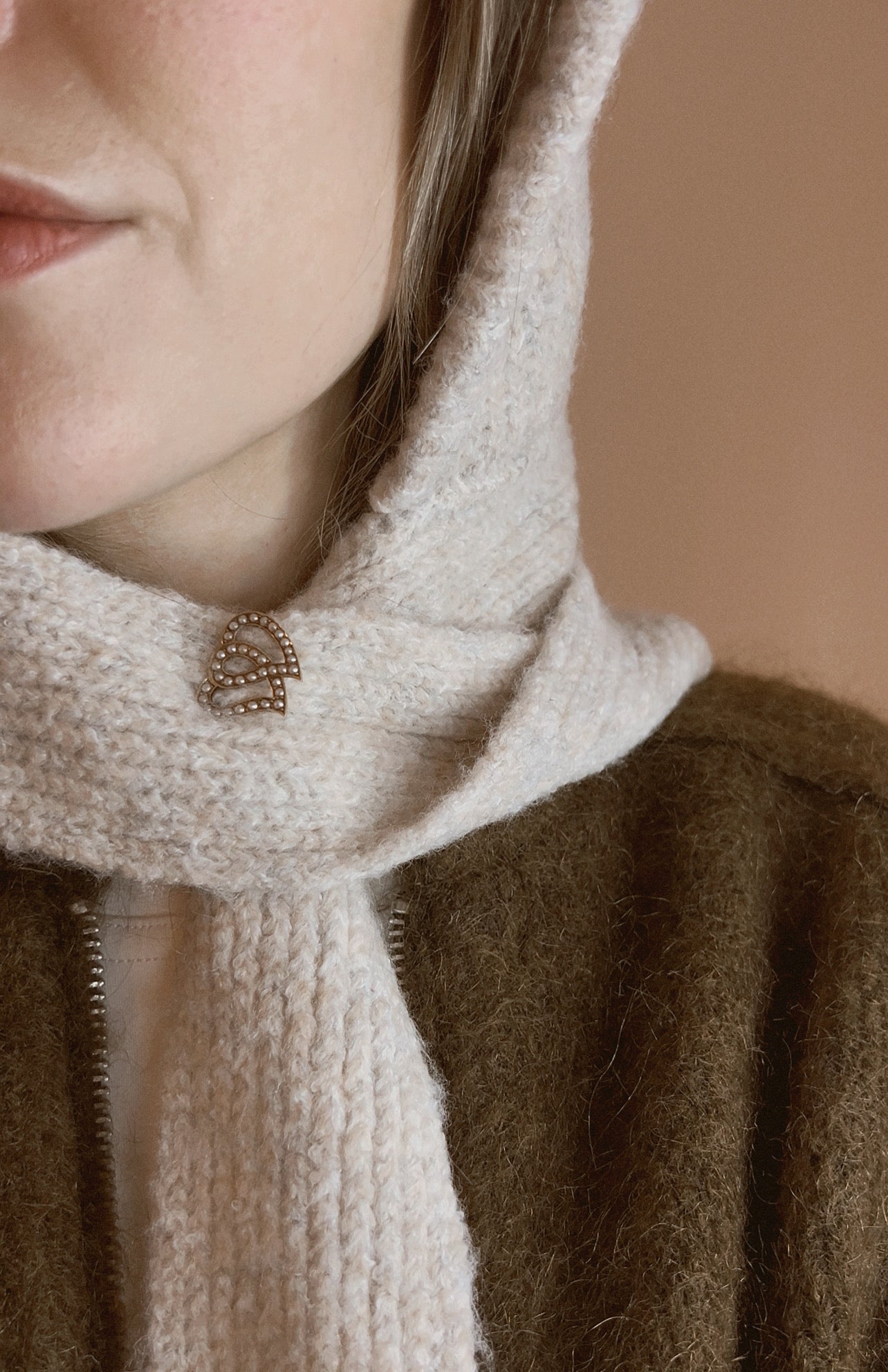 Early 20th Century Split Pearl Double Heart Brooch
