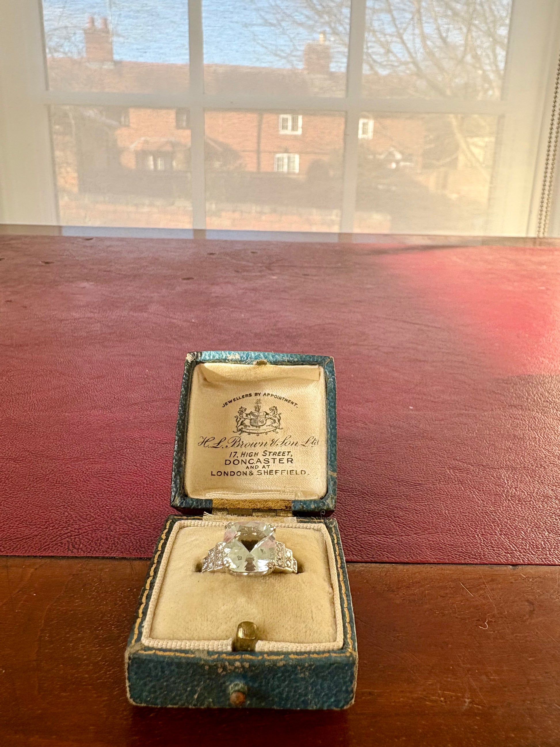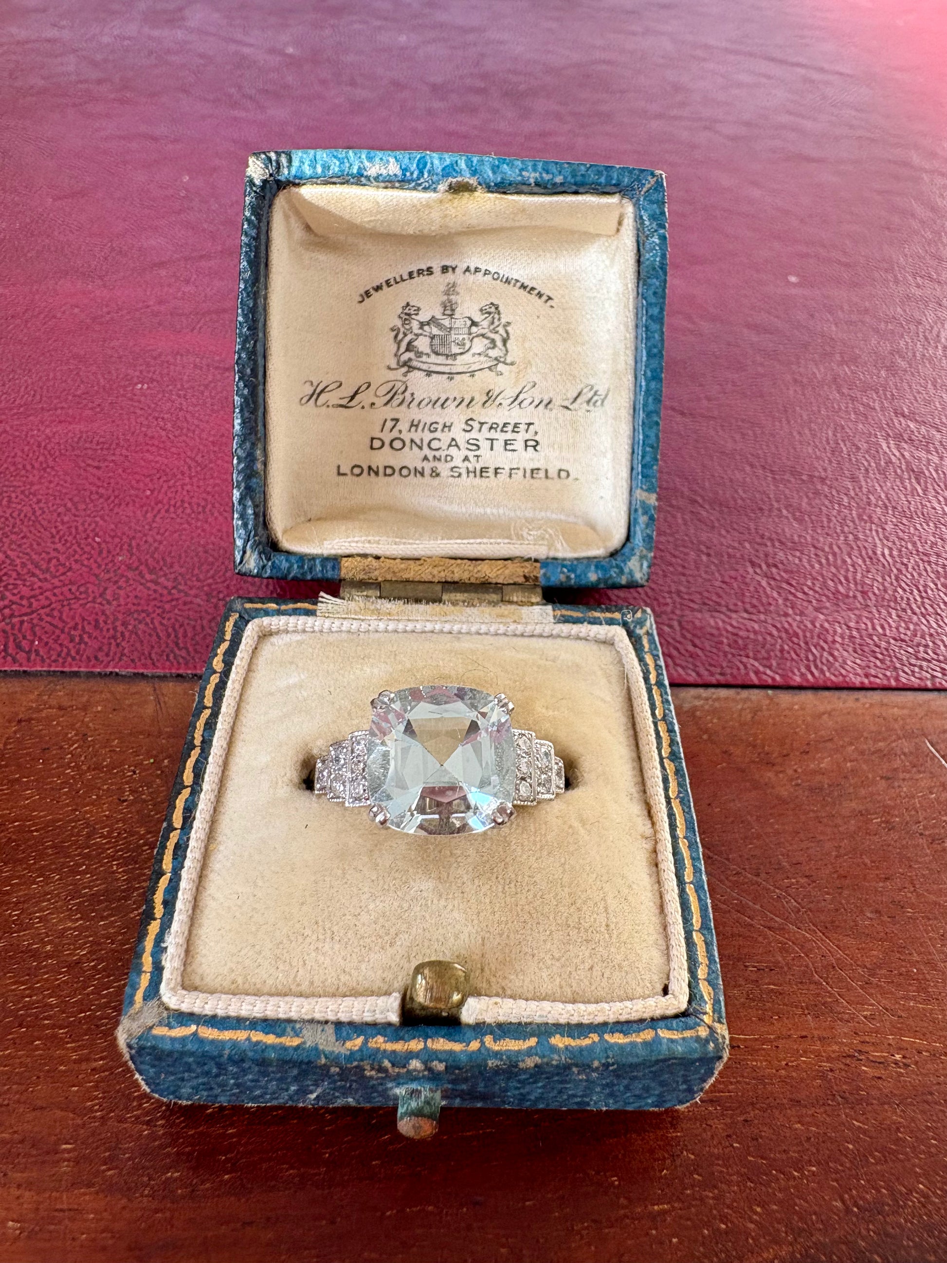 Gorgeous Art Deco Style Platinum, Aquamarine and Diamond Ring