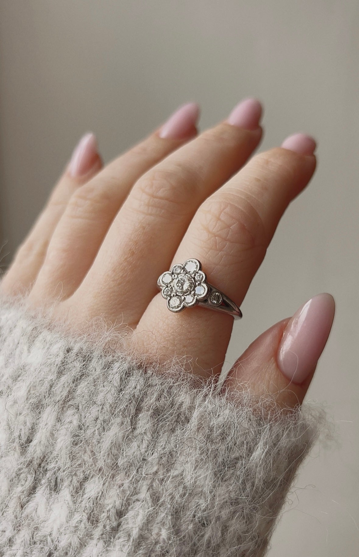 Gorgeous Chunky White Gold Diamond Cluster Ring