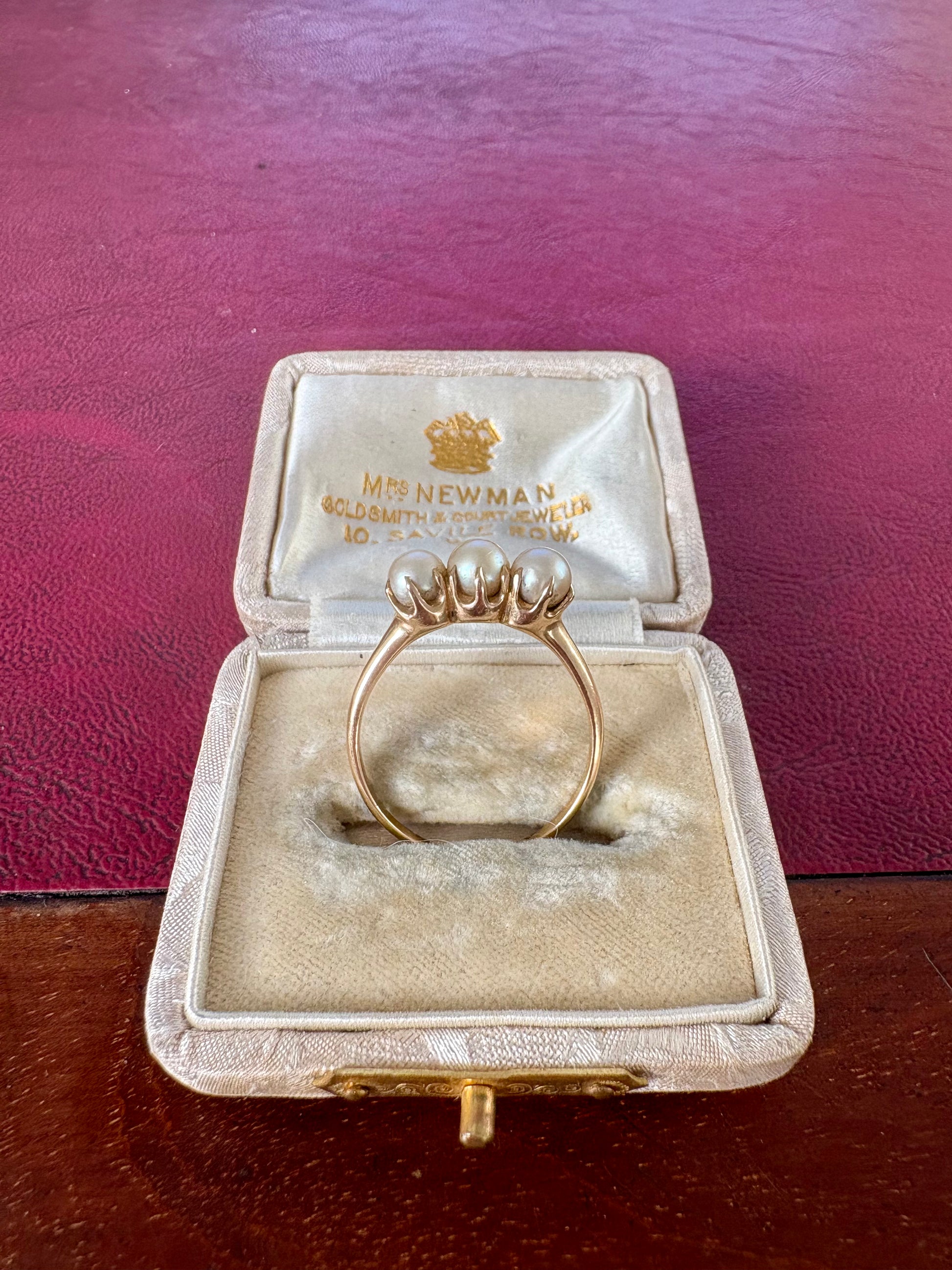 Classic vintage cultured pearl trilogy ring in 18ct gold.