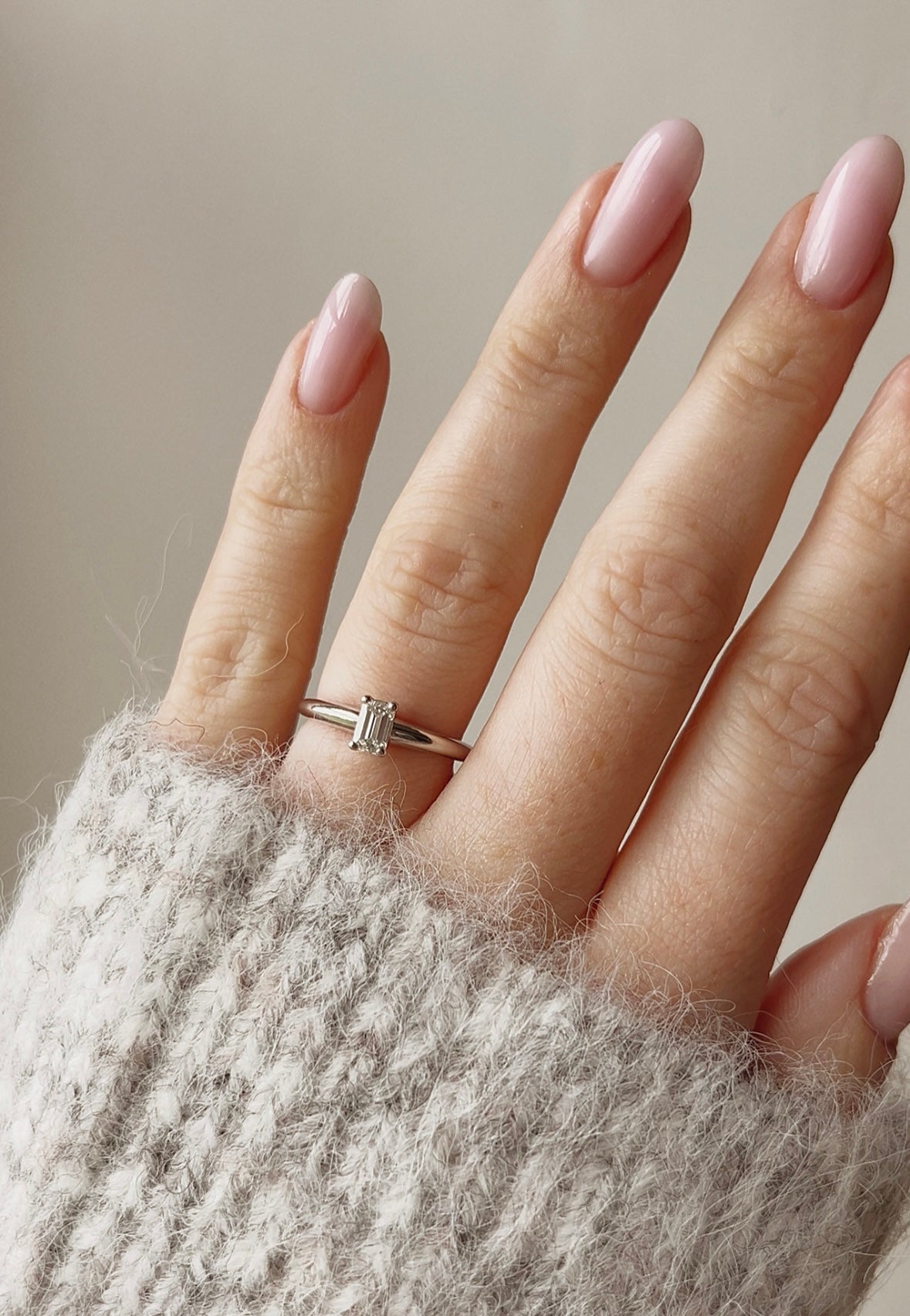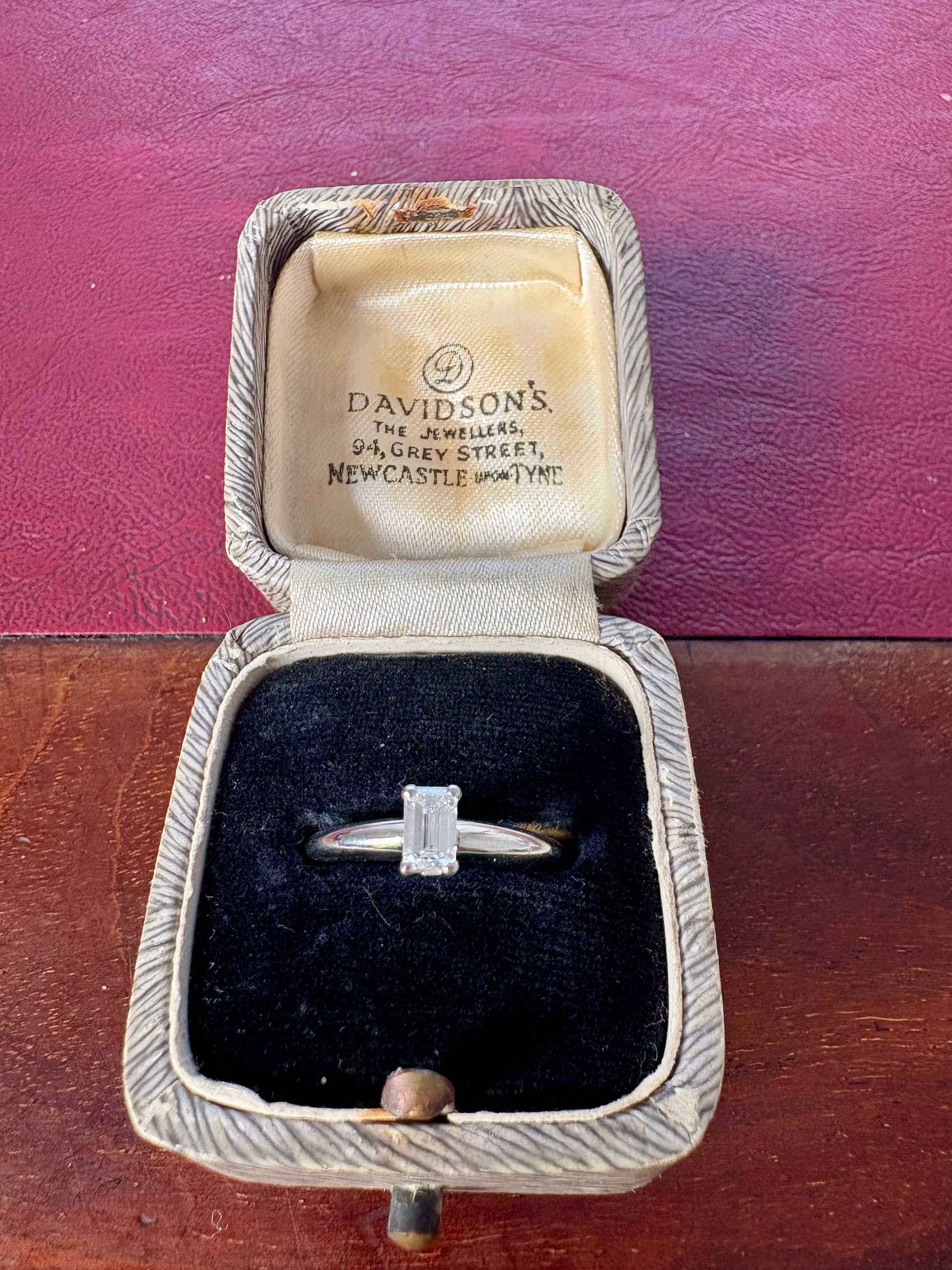 A gorgeous modern platinum rectangular diamond single stone ring. Diamond estimated J_K colour, VS clarity. Hallmarks for Birmingham, England. Estimated diamond weight 0.35ct.
