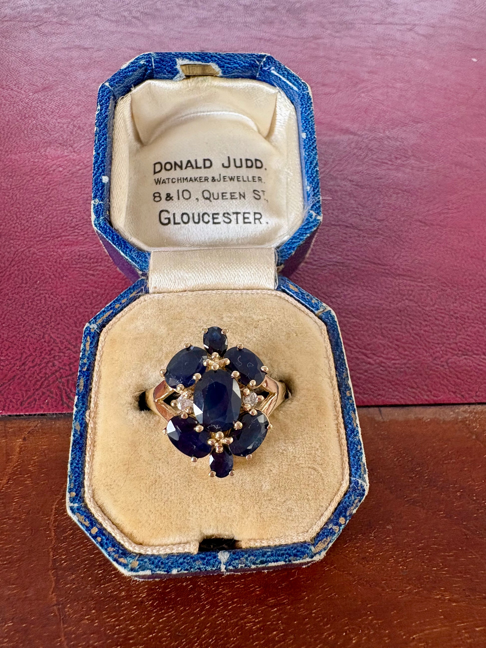 Gorgeous Vintage 9ct Gold, Sapphire and Diamond Ring