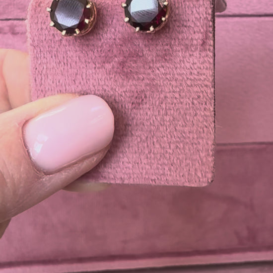 A lovely pair of vintage 9ct gold garnet stud earrings.