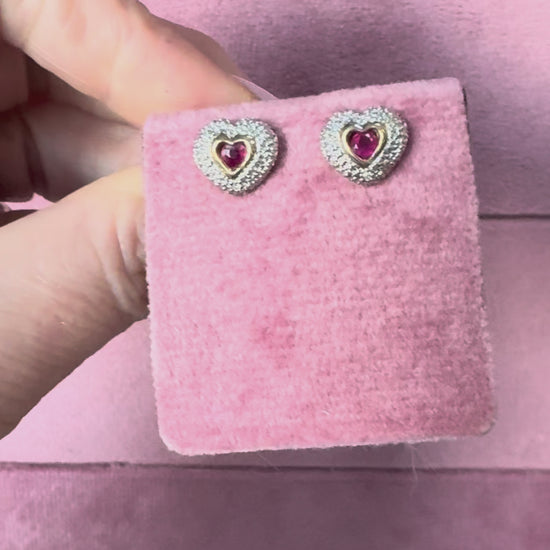 Lovely 9ct Gold, Ruby and Diamond Heart Earrings