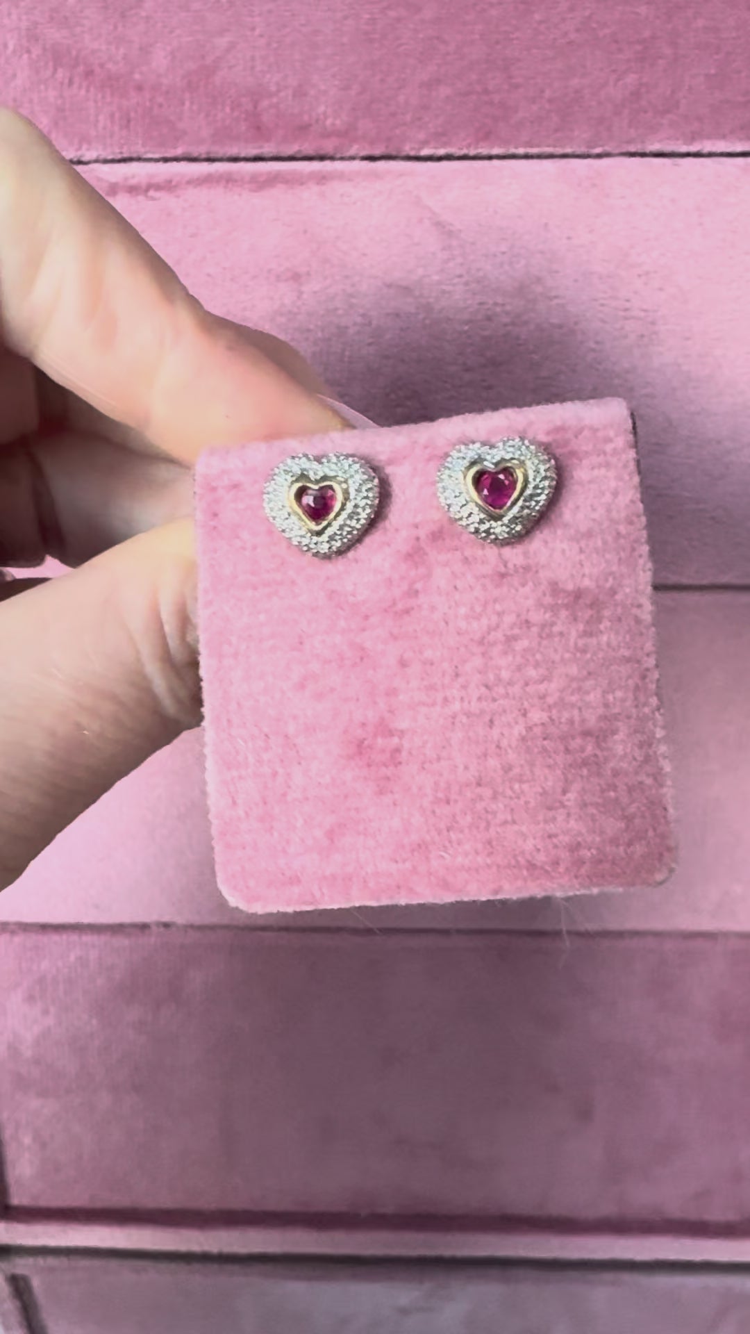 A lovely pair of 9ct gold, ruby and diamond heart earrings. Hallmarks for London.
