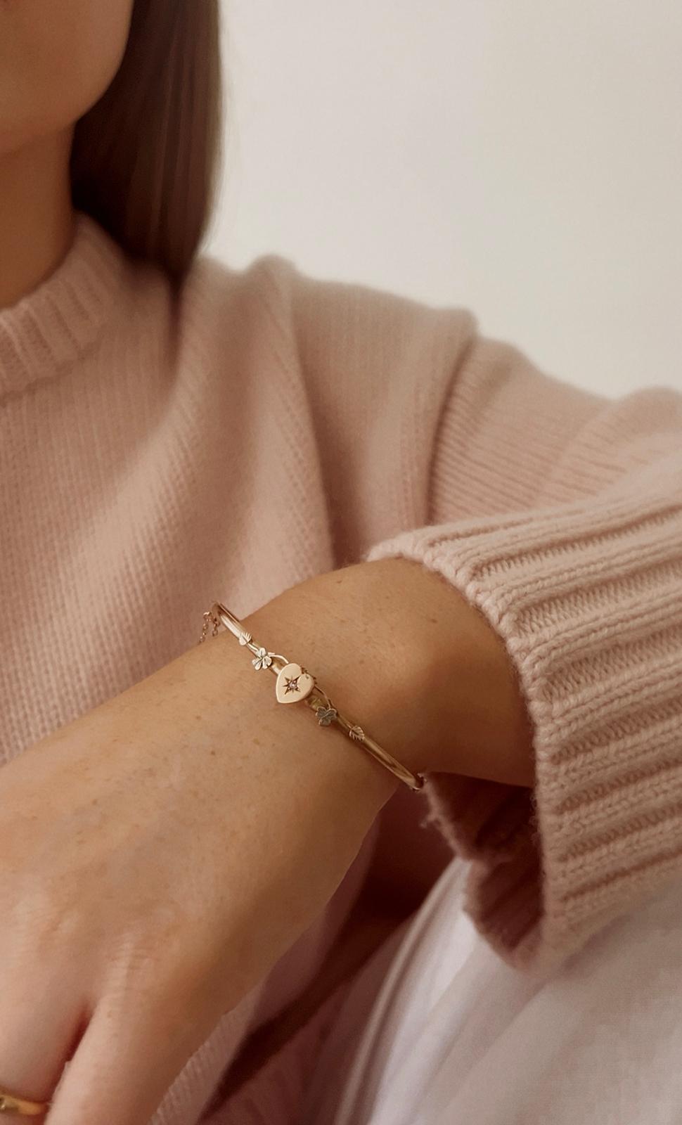Pretty Victorian Gold and Diamond Heart Hinged Bangle
