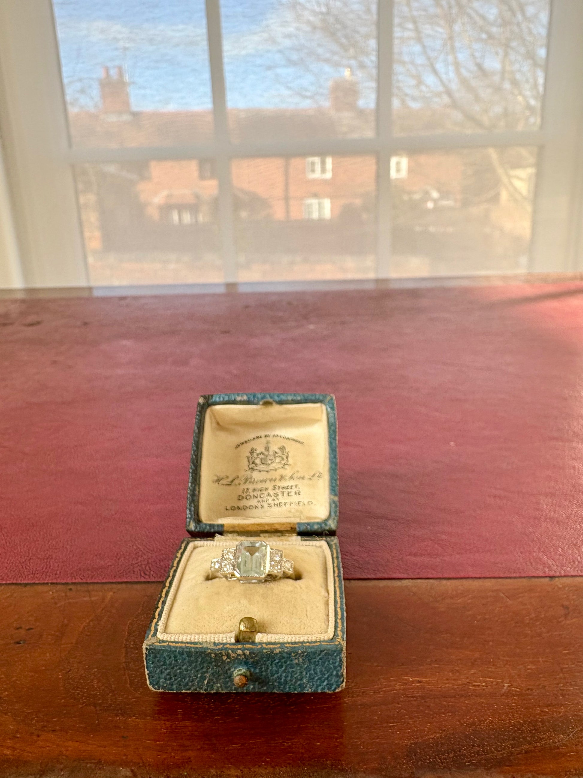 Stunning Art Deco Style Platinum, Aquamarine and Diamond Ring