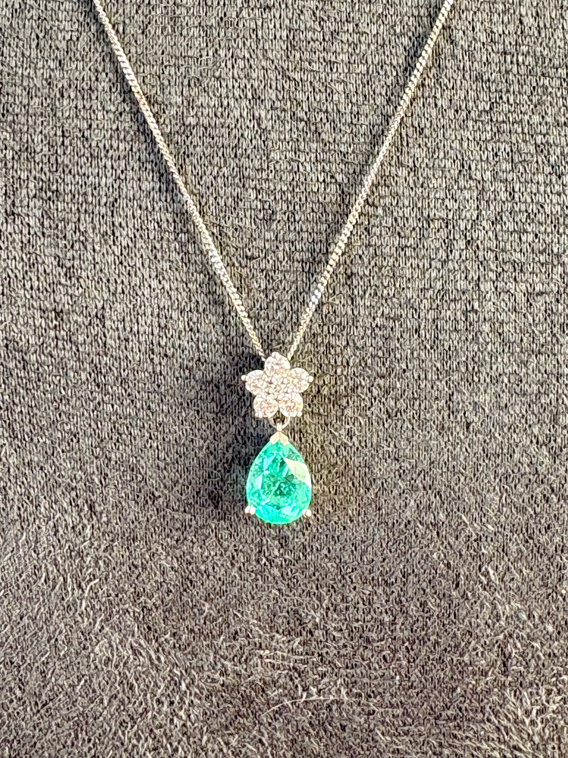 Stunning Modern 18ct White Gold,Diamond and Emerald Pendant