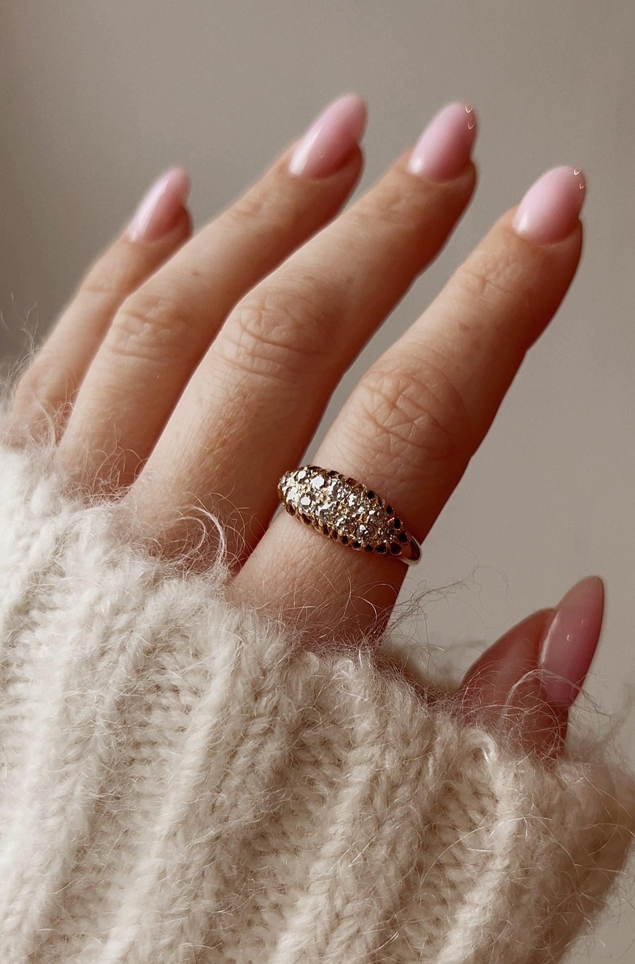 Stunning Edwardian 18ct gold and diamond dress ring set with twelve old cut diamonds. Hallmarks for London. 18ct gold. Estimated total diamond weight: 0.45ct