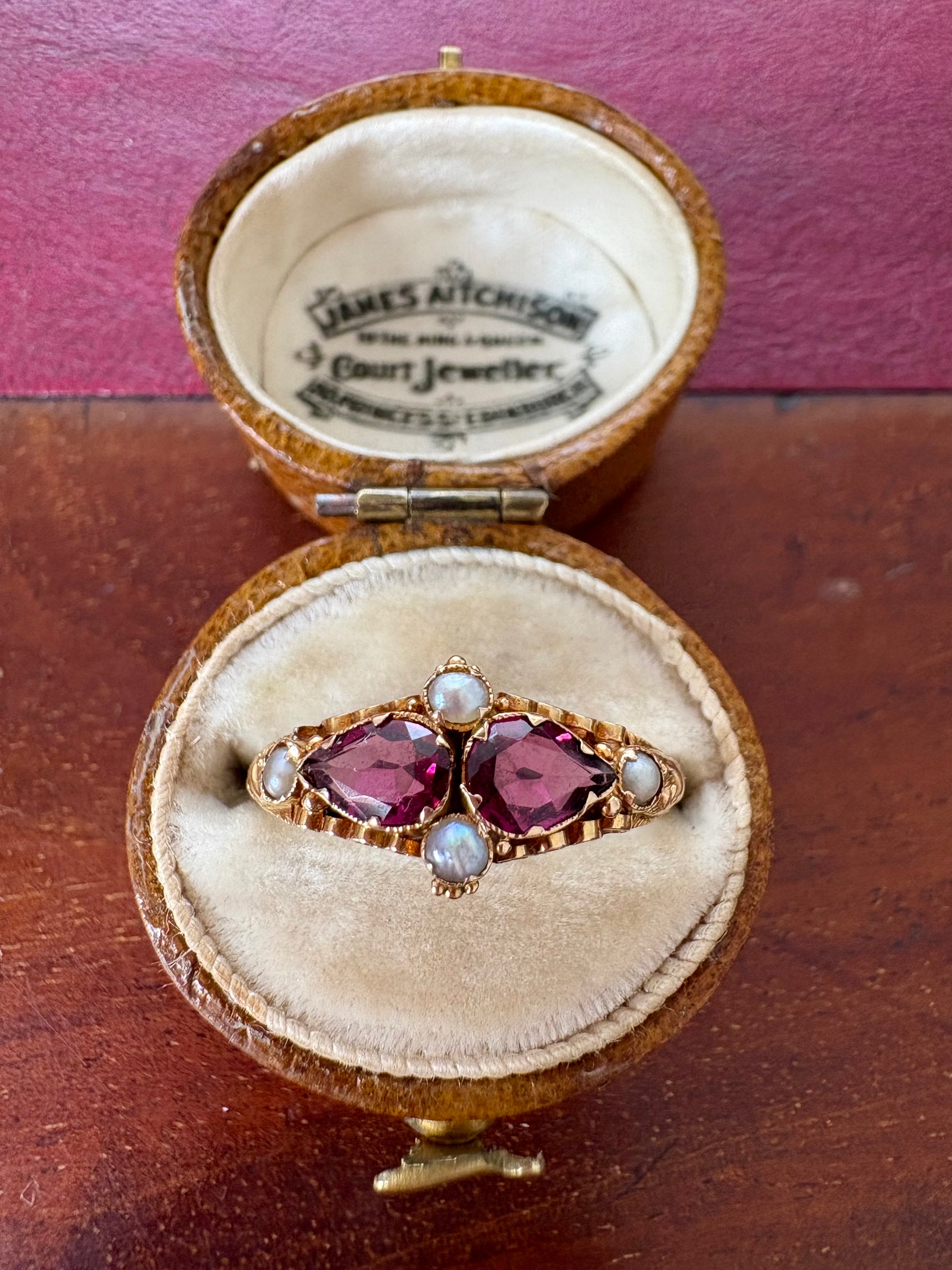 Stunning Victorian 15ct Gold, Garnet and Split Pearl Ring