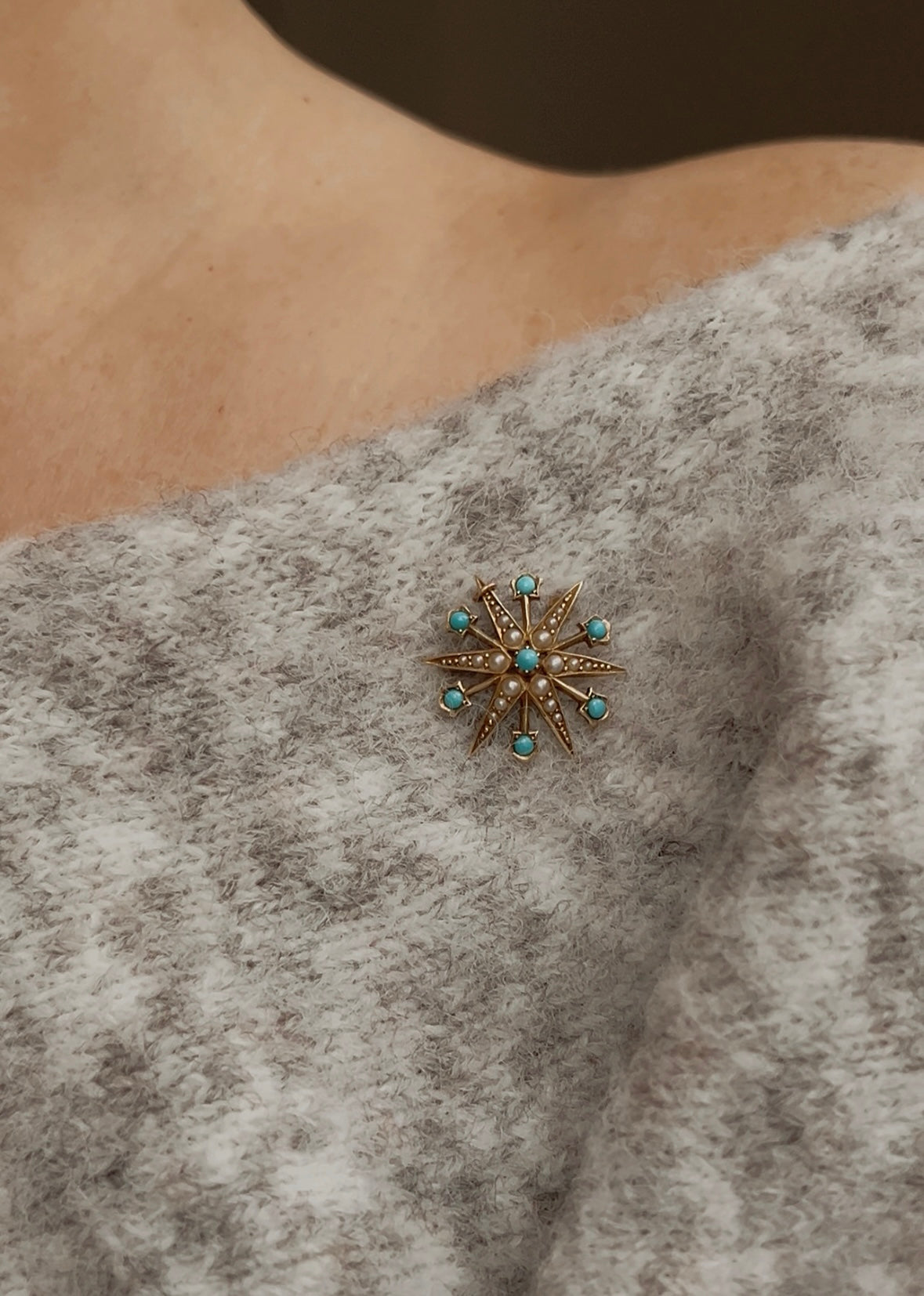 This is a superb Victorian 15ct Gold, Paste and Split Pearl brooch. Stamped 15ct. Victorian star brooches, which were very popular in the late 19th Century, symbolised guidance, hope and good luck. The Victorians had a deep fascination with all things celestial and spiritual. They were worn as tokens of protection, representing a desire for direction and a connection to the heavens. Star jewellery was believed to guide the wearer in life. They were frequently worn as protective amulets to keep the wearer safe.