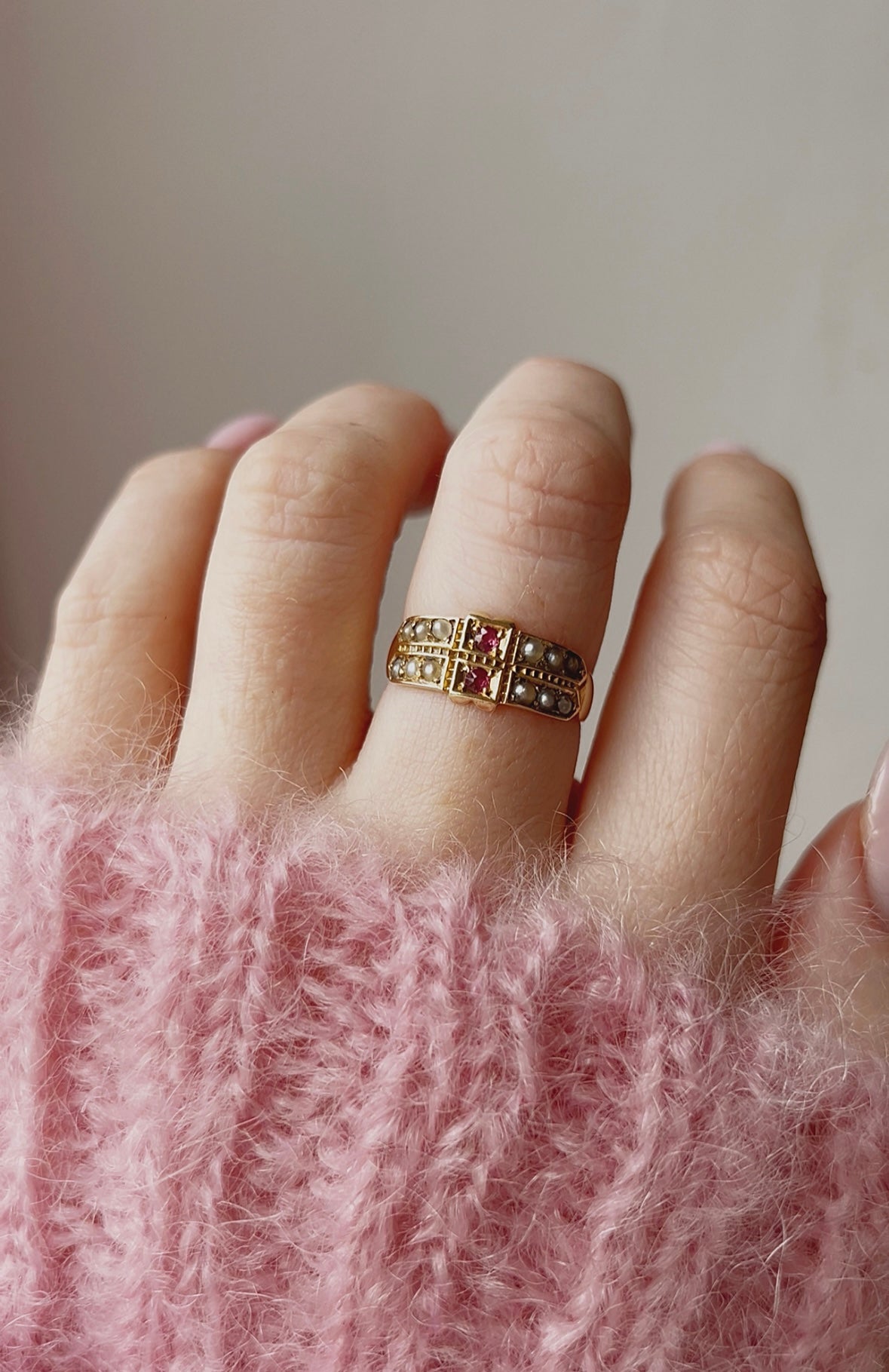 Very pretty Late Victorian 15ct Gold, Ruby and Split Pearl Ring