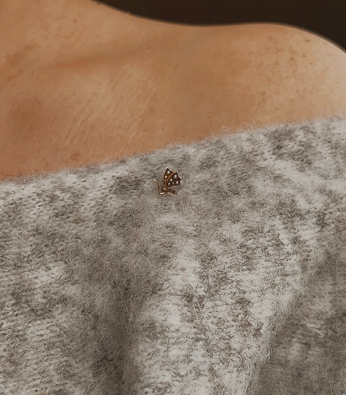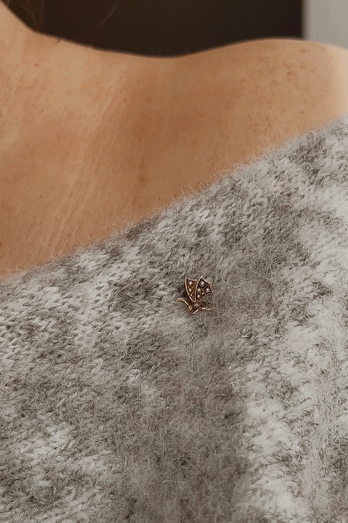 This is a wonderful Early 20th Century split pearl butterfly stickpin.